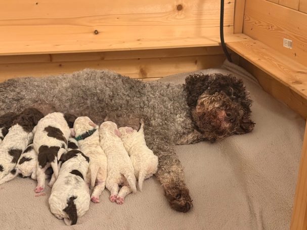 Wir sind schon sehr gespannt auf Gerdis ersten Wurf. Auch wenn uns evtl eine stressige Zeit mit 2 Würfen parallel bevorsteht, freuen wir uns sehr. Für Gerdi haben wir einen sehr schönen Rüden aus Italien vorgesehen und freuen uns schon auf die Reise in die Heimat der Lagotti.